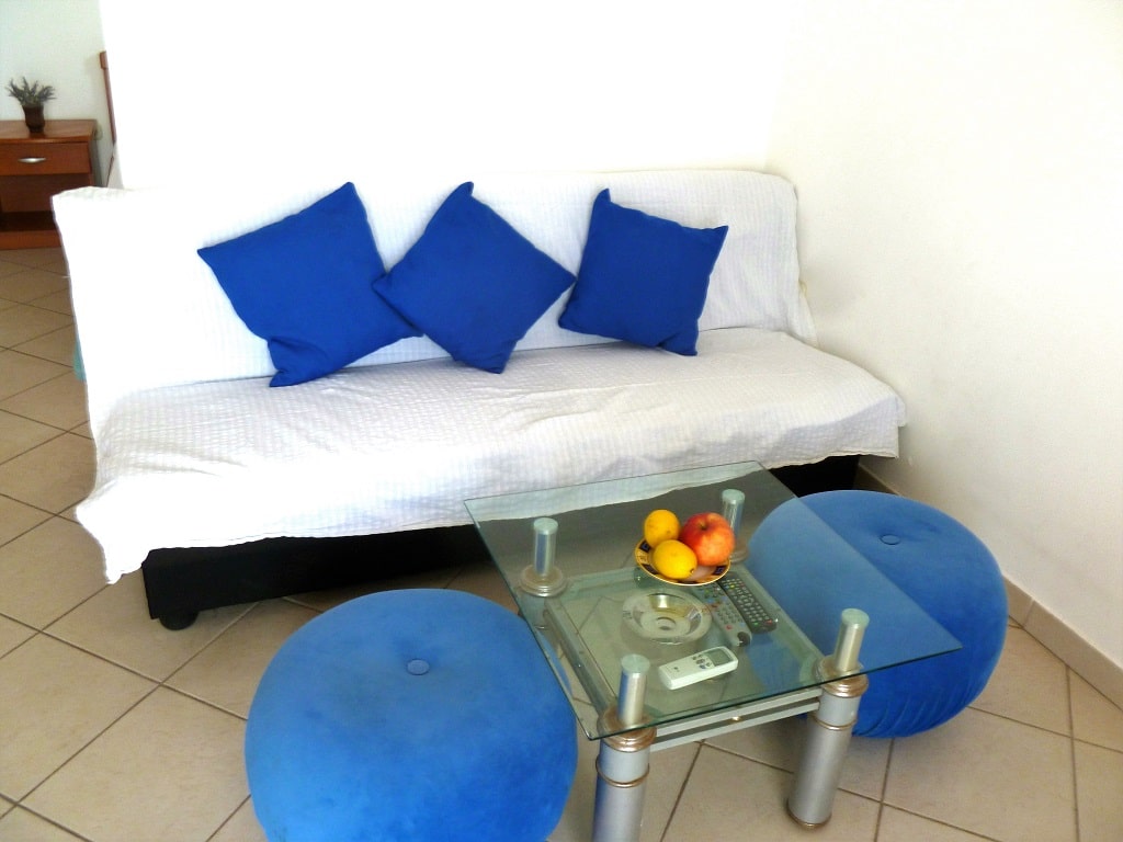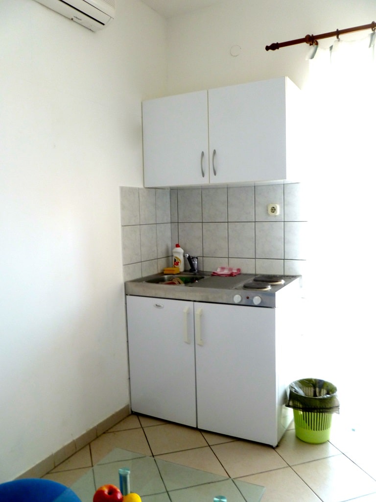 tudio apartment 7 (3+1) is on 2nd floor of Villa Maria and has 35 m2 + balcony (5m2) with beautiful sea view (south oriented). Studio apartment means everything is in one room - 35 m2 (1 double bed, 1 single bed and 1 couch), kitchen (with fridge and all dishes necessary for cooking) + bathroom with shower bath. Apartment has air condition, sat TV, and parking is secured (next to the house).