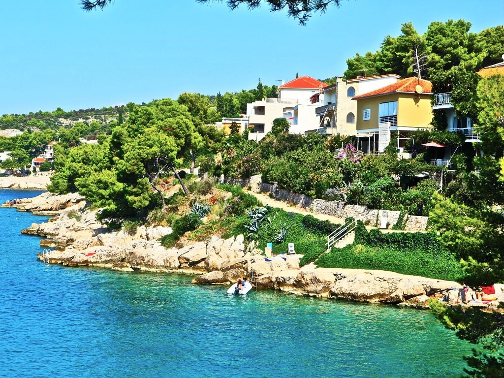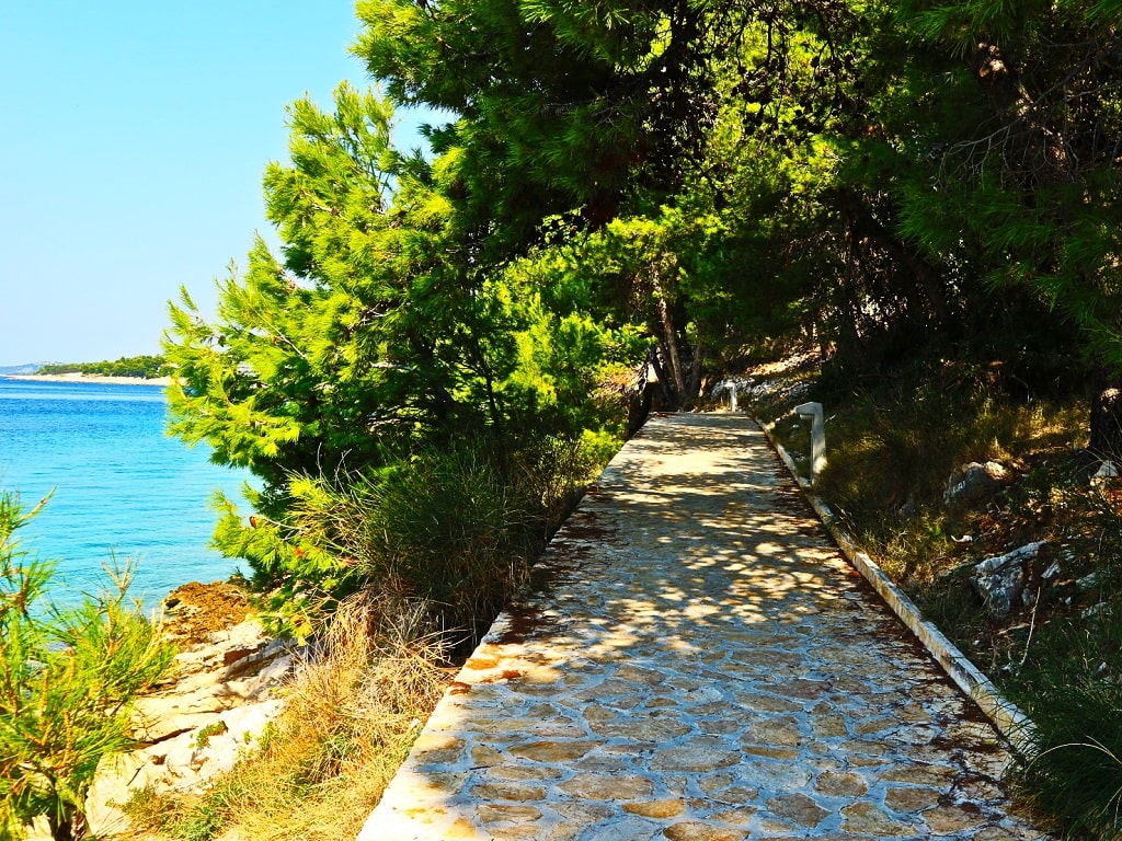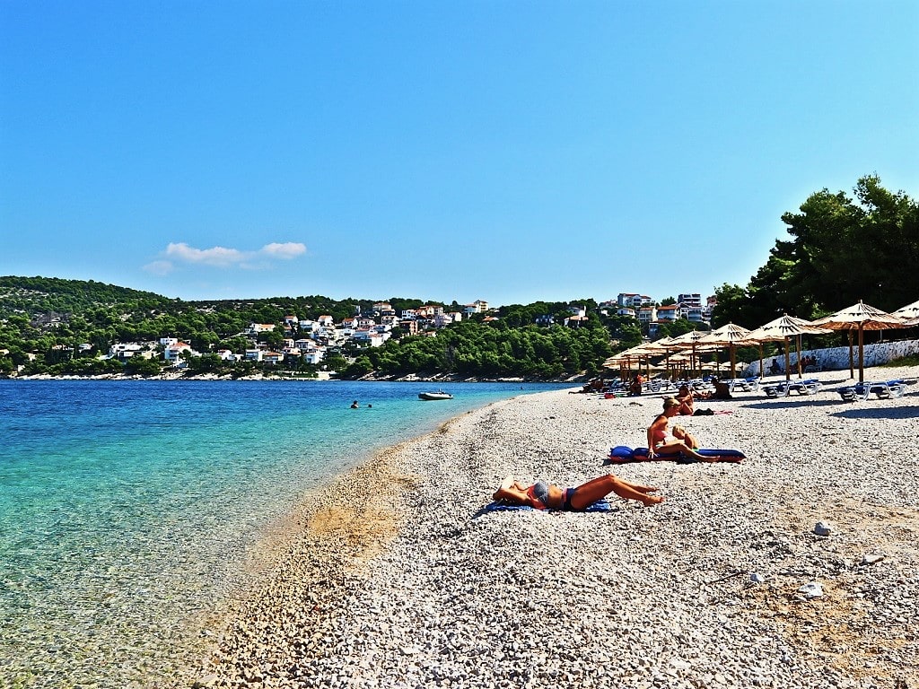 Porat beach is a beautiful small beach with one of the best views on old town Primošten. It is located in beautiful bay 15 minutes easy and nice walk from the center of Primošten. In this bay used to be popular hotel Marina lučica, which is closed for the last 15 years. There are no too many people here and entire bay with another beach looks hidden in dense pine forest growing around the hotel. It is the perfect place for relaxing and enjoying in peace and clean Adriatic sea. You can always find your private spot between rocks or in the shadow of pine trees.