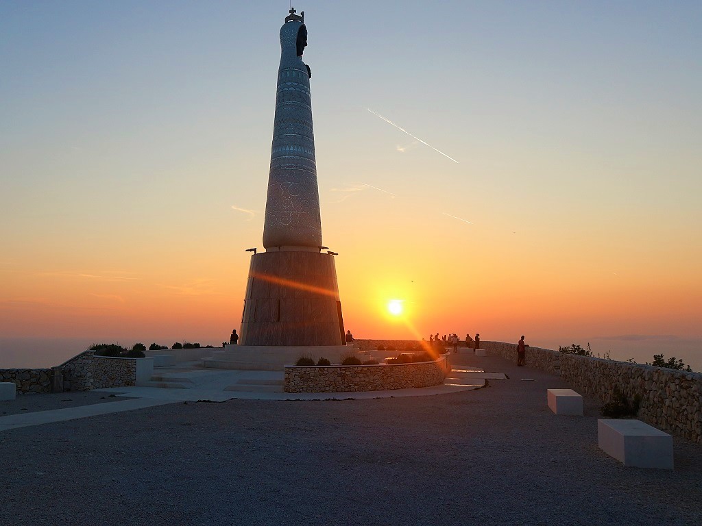 Statue of Virgin Mary is 17 meters high statue of Our Lady of Loreto, the patron saint of the city of Primošten. It is located on top of 170 meters high hill Gaj above Primošten. The statue and viewpoint was opend in 2017. and is becoming new attraction from Primošten and this part of Dalmatia. It offers one of the best views in Dalmatia because it is possible to see Šibenik, Rogoznica, Kornati islands, Hvar... Best time to visit this monument is late afternoon just before sunset, where you can experience one of the best and most romantic sunsets. Sun goes down in Adriatic sea behind small islands. There are 2 options to come here from Primošten. One is with the car all the way to the top, but we recommend walking because it is still an unpaved road. It is an easy walk and you will enjoy in the smells of Mediterranean plants like lavender, immortelle, and rosemary...