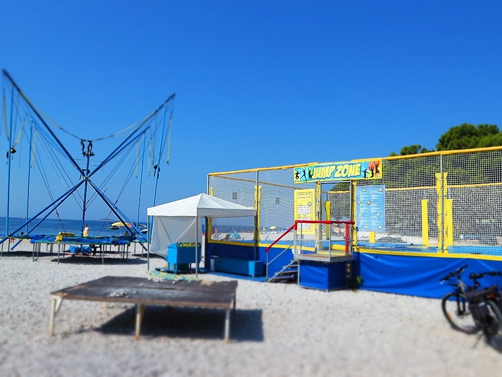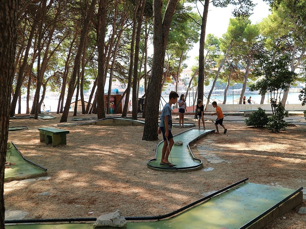 Sports center Primošten is located on Raduča peninsula and is part of Zora hotel in Primošten. Here all guests and tourists can rent and enjoy tennis, table tennis, and mini golf. Free of charge are beach volleyball and basketball playgrounds. It is the perfect place for sport activities because it is located in shade of pine trees and surrounded by two sides with beautiful beaches of Raduča Mala and Raduča Velika. It is open all day through the summer season and next to it is bar and restaurant. For small kids nearby is children playground, so sport activities for the entire family.