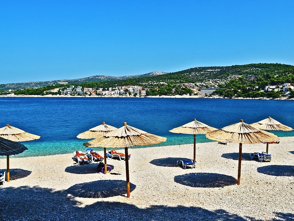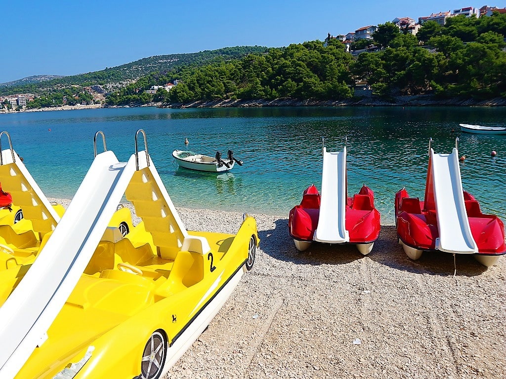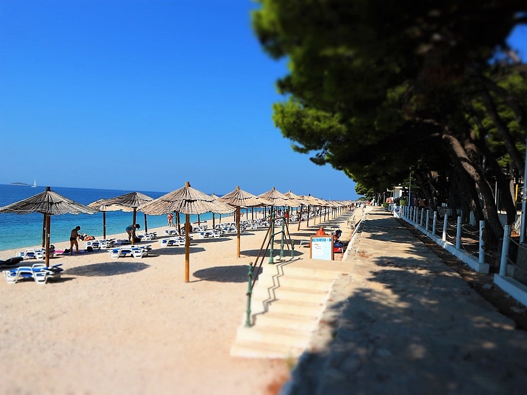 Raduča Mala is the main and largest beach in Primošten. It is located along the town promenade full of restaurants, bars and taverns. Apart from enjoying the sun and the sea, the beach offers an idyllic view of the Primošten old town peninsula. On the beach it is possible to rent deck chairs and sun umbrellas, paddle boats, motor boats, SUP... Here is also located children playground for small kids. Beach continues along entire lenght of Raduča peninsula and together with Raduča Velika it makes one of the longest beaches in Croatia, almost 2 kilometers long. Because of its lenght it is never too crowded and you can always find perfect spot for you and your family.